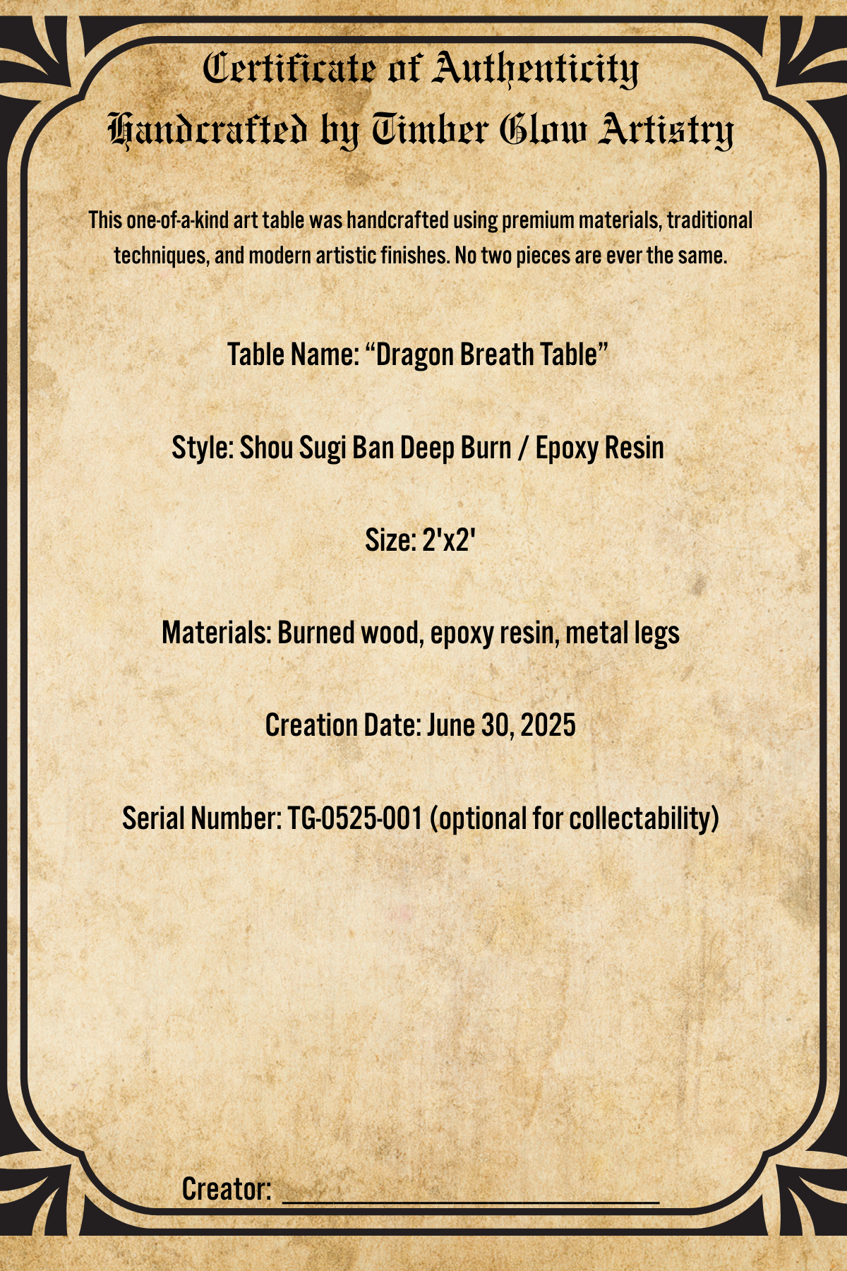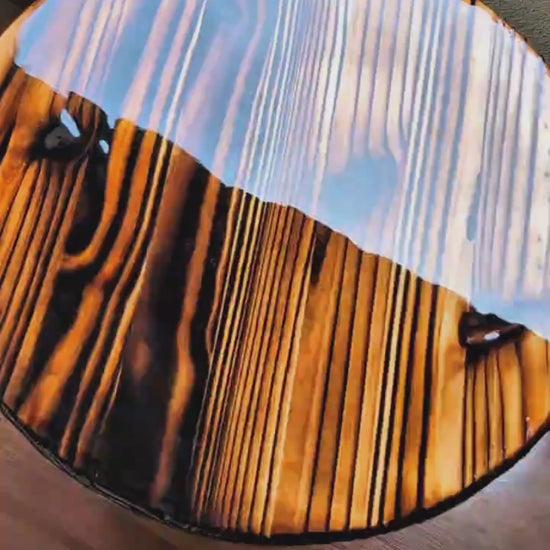 Each burn is earned. Each detail, intentional. This Shou Sugi Ban table was torched with real flame, then sealed in mirror-finish epoxy so glossy it reflects the world around it — and the story behind it.